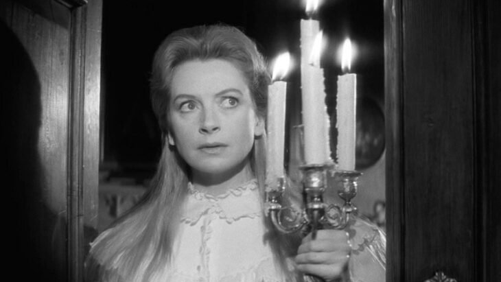 A atriz Deborah Kerr como Miss Giddens em “Os Inocentes” (1961), dirigido por Jack Clayton. Gosto muito dessa cena onde ela segura um candelabro e anda pela mansão durante a noite, demonstrando os traços góticos presentes nesse belo filme.